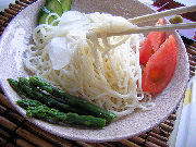 安心安全な北海道産栽培のえごま、北海道産の小麦、北海道産玄そば(自社製粉)を自然乾燥で腰の強い麵を作りました。
